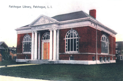 The library began in 1883 as the Patchogue Library Association with a five-dollar membership fee, later receiving funding from Carnegie for a new building in 1906.