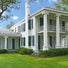 The Michel B. Menard House, constructed in 1838, features white columns, symmetrical windows, and detailed woodwork characteristic of Greek Revival architecture.