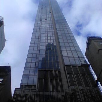 The 805-foot-tall glass structure at 126 Madison Avenue contains 199 condominiums across 47 floors with floor-to-ceiling windows facing the Manhattan skyline.