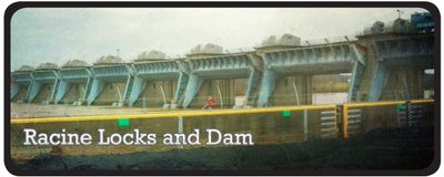 The Racine Lock and Dam features two locks, with the main lock measuring 1200 feet by 110 feet for commercial traffic passage.