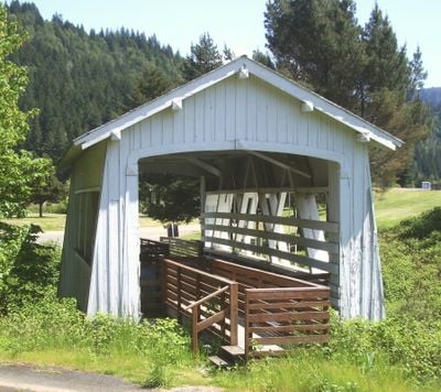 The structure represents a period of American transportation infrastructure when covered bridges protected wooden components from Pacific Northwest weather conditions.