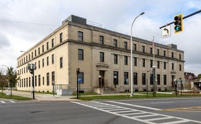 Built between 1928 and 1929, the federal building replaced an overcrowded 1882 post office during Utica's population growth period.