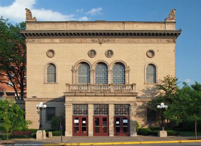 The Sheldon Theatre features Renaissance Revival architecture with classical elements, intricate design details, and a preserved interior that enhances acoustic performances.