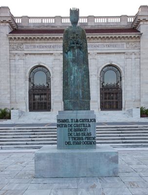 Queen Isabella, Bronze statue at Pan American Union Building, Washington DC, United States.