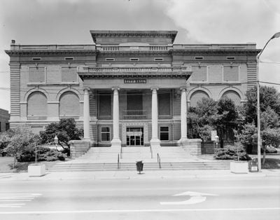 Little Rock City Hall features classical architectural elements with a symmetrical facade, stone columns, and a central entrance facing the downtown district.