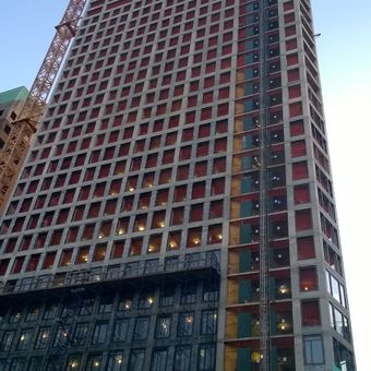 The 2020 construction stands on a former site of the Brooklyn Heights branch of the Brooklyn Public Library, which operated since 1962.