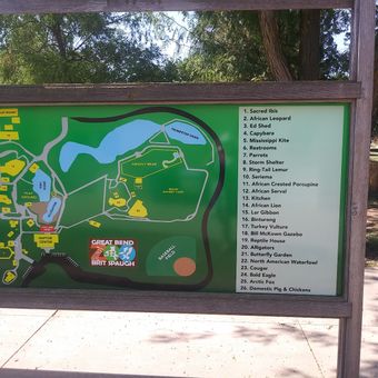 The Great Bend Zoo is an animal park with habitats for lions, tigers, bears, and numerous bird species spread across spacious grounds. The park features paved walkways for strolling, picnic areas for rest, and concession stands for food and souvenirs throughout the property.