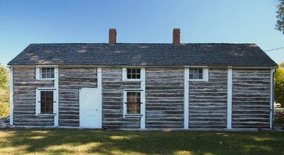 The Sam Brown Memorial State Wayside spans one acre of land featuring a preserved log building from Fort Wadsworth and outdoor recreational spaces.