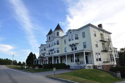 The Poland Springs Historic District features a golf course, several buildings, and natural springs spread across a landscaped environment in South Poland.