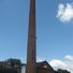 Kamm and Schellinger Brewery is a brick complex built around 1853 in Mishawaka, Indiana, with a four-story main building, a stable, and a boiler house. The main structure features metal detailing along its roofline, a columned entrance with a pediment supporting a cupola, and a distinctive tall brick chimney that remains visible from a distance.