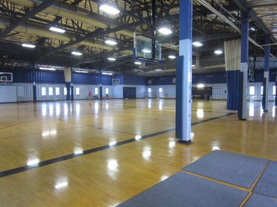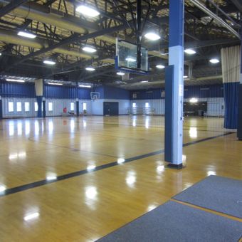 The Municipal Gymnasium contains three full-size basketball courts under one roof, providing space for multiple concurrent sports activities and recreational programs.