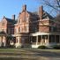 The red brick building with limestone details features a wraparound verandah, square tower, and porte-cochère at 1410 North Delaware Street.