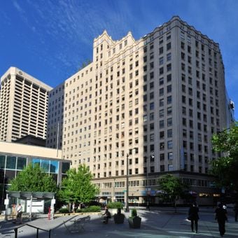 The Medical Dental Building combines professional healthcare spaces with Gothic Revival architecture, reflecting early 20th-century American design preferences.