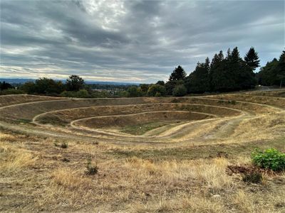 King County Arts Commission selected this location from 100 gravel pits in 1979 to create the first permanent land reclamation sculpture in the United States.