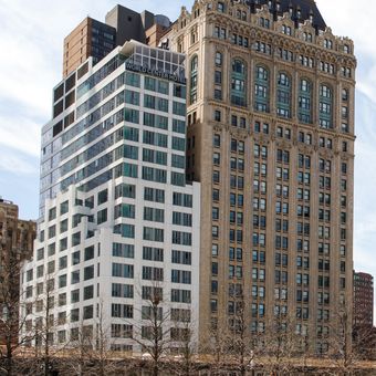 130 Cedar Street rises 164 feet above ground level with 21 floors in a mid-rise structure between Cedar Street and Albany Street in Lower Manhattan.