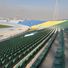 Al-Shaab Stadium contains an athletics track surrounding a natural grass field, with stands accommodating 35,000 spectators under open skies.