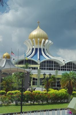 The concrete structure with its single minaret stands at the intersection of Jalan Masjid Negeri and combines Western modernist architectural elements.