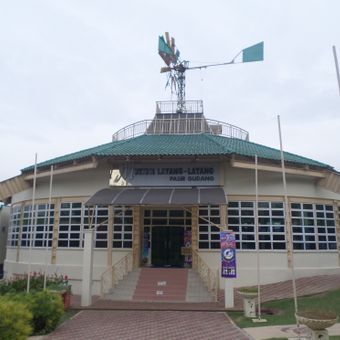The two-story museum building contains exhibits of various kites, along with posters and videos documenting traditional Malaysian kite craftsmanship and flying techniques.