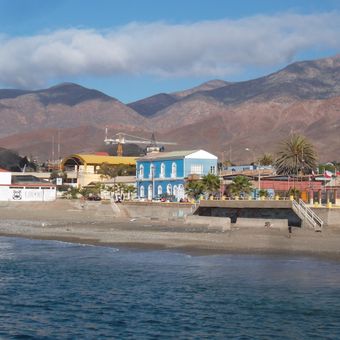 Taltal is a small city located along the coast in the Antofagasta Province of northern Chile. The settlement sits in a narrow coastal area where buildings spread across flat terrain, with the ocean forming a natural boundary on one side.