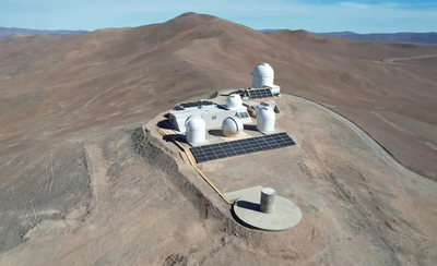 The observatory receives power from solar panels and benefits from over 330 clear nights annually due to the Atacama Desert climate.