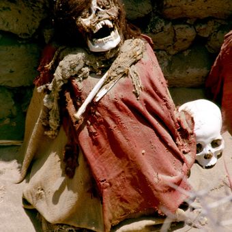 Chauchilla Cemetery is an archaeological site in southern Peru where dozens of mud-brick tombs have survived in the desert landscape. The bodies inside are wrapped in cotton textiles and coated with protective resin, a combination that kept them safe from decay over centuries.