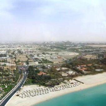 Jumeirah is a beachfront residential zone in Dubai featuring luxury villas, hospitality facilities, and retail spaces overlooking the Gulf. The neighborhood stretches along the coast with designated beach areas and contemporary amenities throughout.