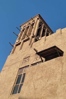 The area reflects Dubai's maritime trading past through its location on Dubai Creek, which served as a central point for commerce and cultural exchange.