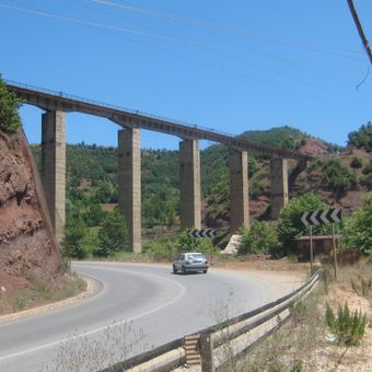 The structure stands as the highest railway bridge in Albania, demonstrating advanced engineering methods from the early 1970s construction period.