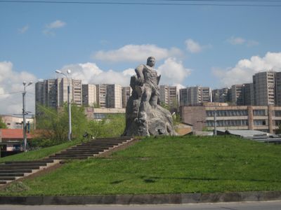 Armenian sculptor Levon Tokmajyan created this memorial in 2007 to honor Gevork Chavush, a military leader during the Armenian National Liberation Movement.