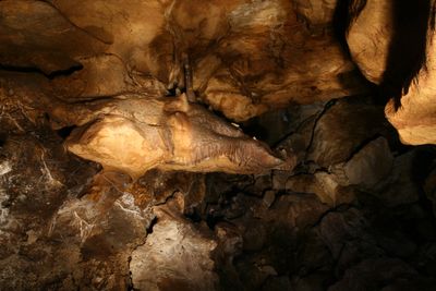 Archaeological discoveries within the cave include human bones from the Neolithic period and stone tools, indicating early human occupation of this underground structure.