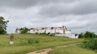 The fortress displays Portuguese architectural style with its thick stone walls and gun ports that clearly show European building methods of the period. This blend of military design and colonial structures shapes how the site looks to visitors today.