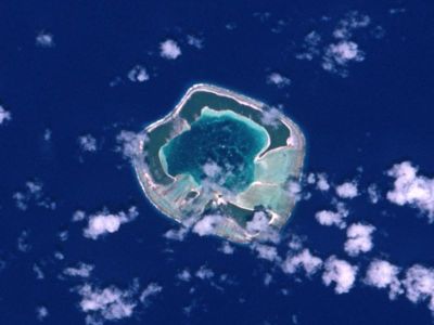 The atoll lacks permanent inhabitants and contains only a narrow passage allowing canoe access through its surrounding coral reef structure.