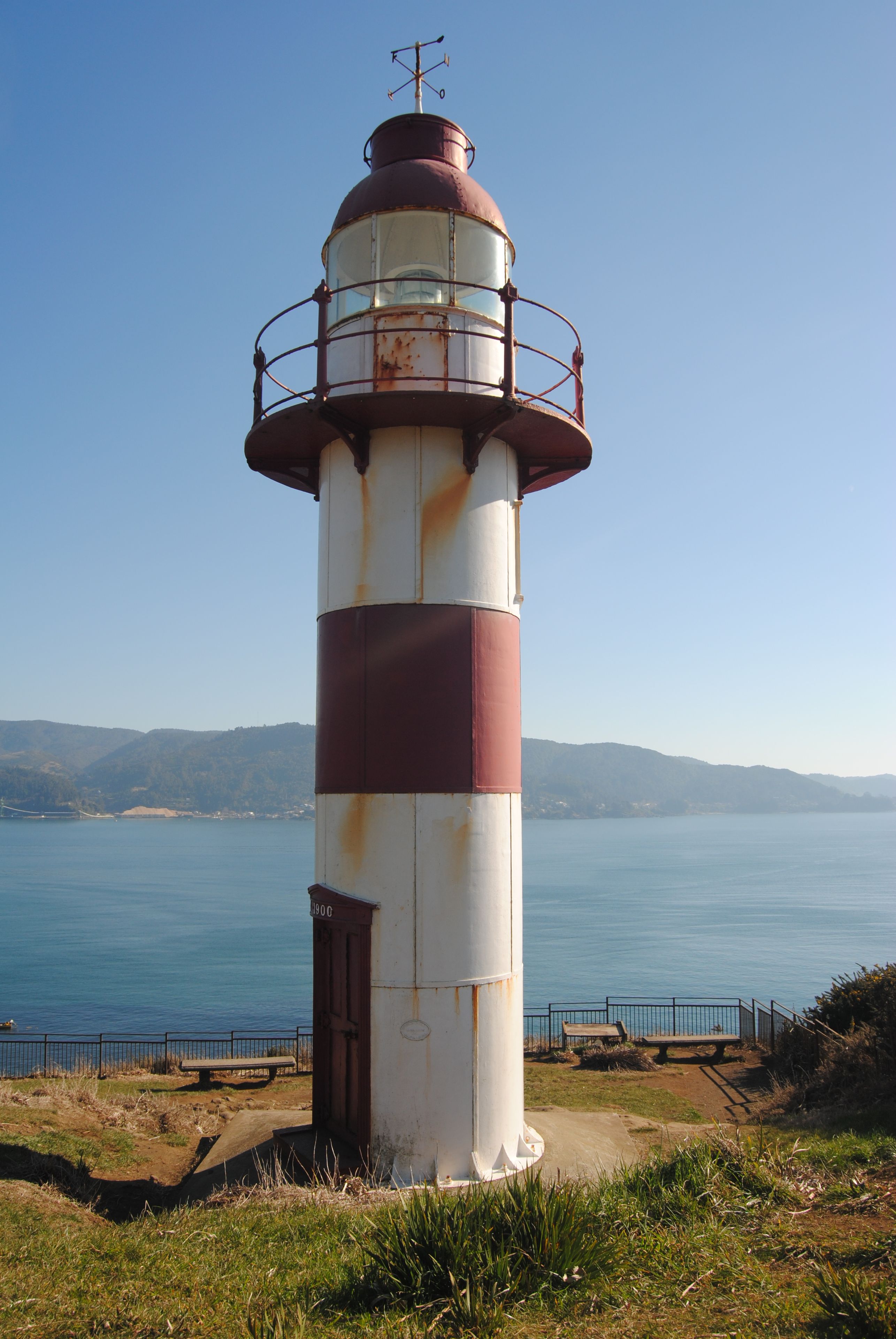 Faro del Fuerte de Niebla, Coastal lighthouse near Corral Bay, Chile.