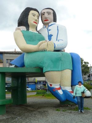 The sculpture represents a romantic couple on the waterfront, connecting with the traditional maritime identity and social life of Puerto Montt residents.