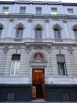 Located at Salvador Donoso 1337, visitors can examine the exterior architecture, including porticos and decorative reliefs surrounding the entrance staircase.