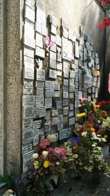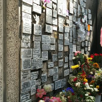 The tomb of Margarita del Carmen Cañas, located on Lircay Street within Santiago General Cemetery, displays over 70 gratitude plaques from visitors.