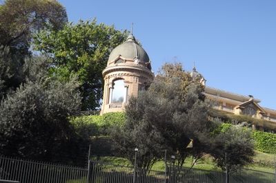 The palace stands on the western ridge of San Cristóbal hill, surrounded by century-old trees including palm trees, pine trees, and native Chilean species.