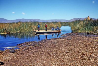 The Uros people construct and inhabit artificial islands made entirely from totora reeds, which require constant maintenance and rebuilding every three months.