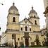 St. Peter's Church is a Catholic basilica in Lima's Historic Center combining Neocolonial and Neoclassical styles with two prominent towers at its main façade. The interior contains multiple altars, religious artworks, and spaces designed for worship and congregation.
