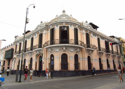 Casa de Fernandini stands at the intersection of Jr. Ucayali and Jr. Rufino Torrico, featuring a two-story facade with wrought-iron balustrades and ornate mosaics.
