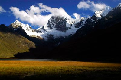 Rondoy stands at 5,870 meters in elevation within the northern section of the Huayhuash mountain range of the Peruvian Andes chain system.