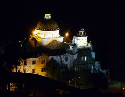 The church position between two valleys creates special lighting conditions at sunset, when the building casts long shadows across the Guápulo district.