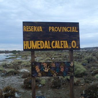 The wetland gained municipal and provincial reserve status in 2000, managed by Caleta Olivia Municipality and Santa Cruz Agricultural Council.
