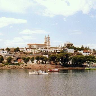 The Cathedral of Our Lady of Mercy features traditional Argentine Catholic architecture and stands near the Rio Negro River in downtown Viedma.