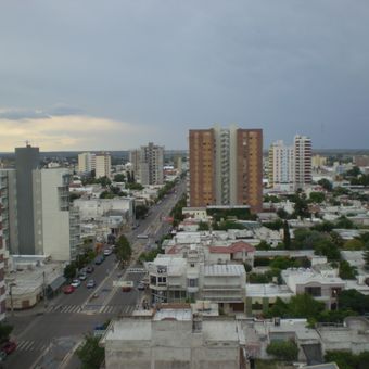 Santa Rosa is the capital of La Pampa Province in central Argentina and sits at the edge of a large lagoon where two major overland routes cross. The city spreads across flat terrain with wide avenues, low residential neighborhoods, and a few taller buildings in the center, surrounded by the open grasslands of the pampa.