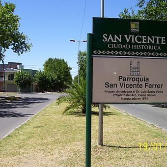 San Vicente is a human settlement in Buenos Aires Province situated on flat terrain surrounded by agricultural land. The town has a historic church structure and is connected to Buenos Aires through multiple transportation routes.