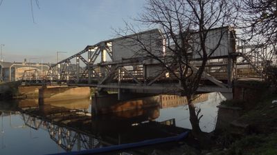 The Bosch Bridge extends across the Matanza River, connecting Algarrobo Street in Barracas with Barrio Piñeyro of Avellaneda Partido.