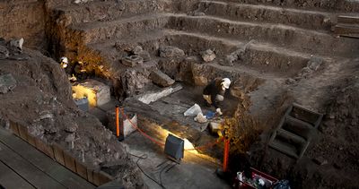 Archaeological excavations at the site revealed three underground levels where political prisoners were held, including cells and interrogation rooms.