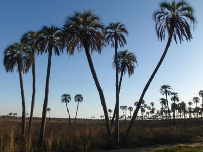 El Palmar National Park is a nature reserve in Entre Ríos Province covering around 8,200 hectares, with dense groves of Yatay palms set among grasslands, small forests, and riverside areas along the Uruguay River. The palms grow here mixed with different vegetation types adapted to the river landscape.
