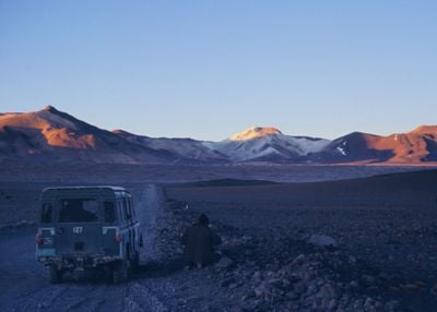 The summit area of Cerro Escorial contains a crater measuring 1 kilometer in width, with lava flows extending across both Chilean and Argentine territories.